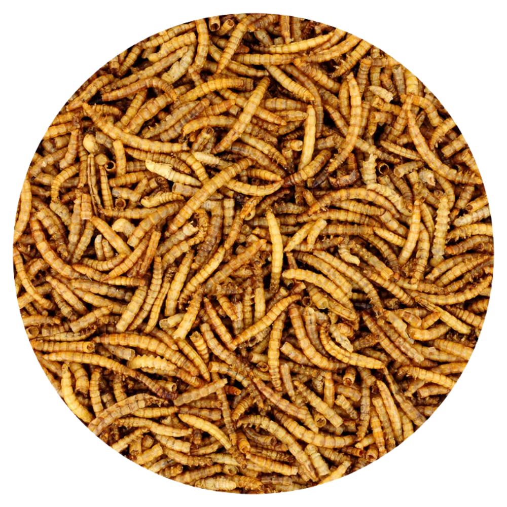 Estos gusanos están elaborados con 100% larvas deshidratadas (Tenebrio molitor), sin aditivos ni conservadores, ofreciendo una fuente rica en proteína y grasa saludable que ayuda al desarrollo, la energía y la vitalidad de tu mascota.