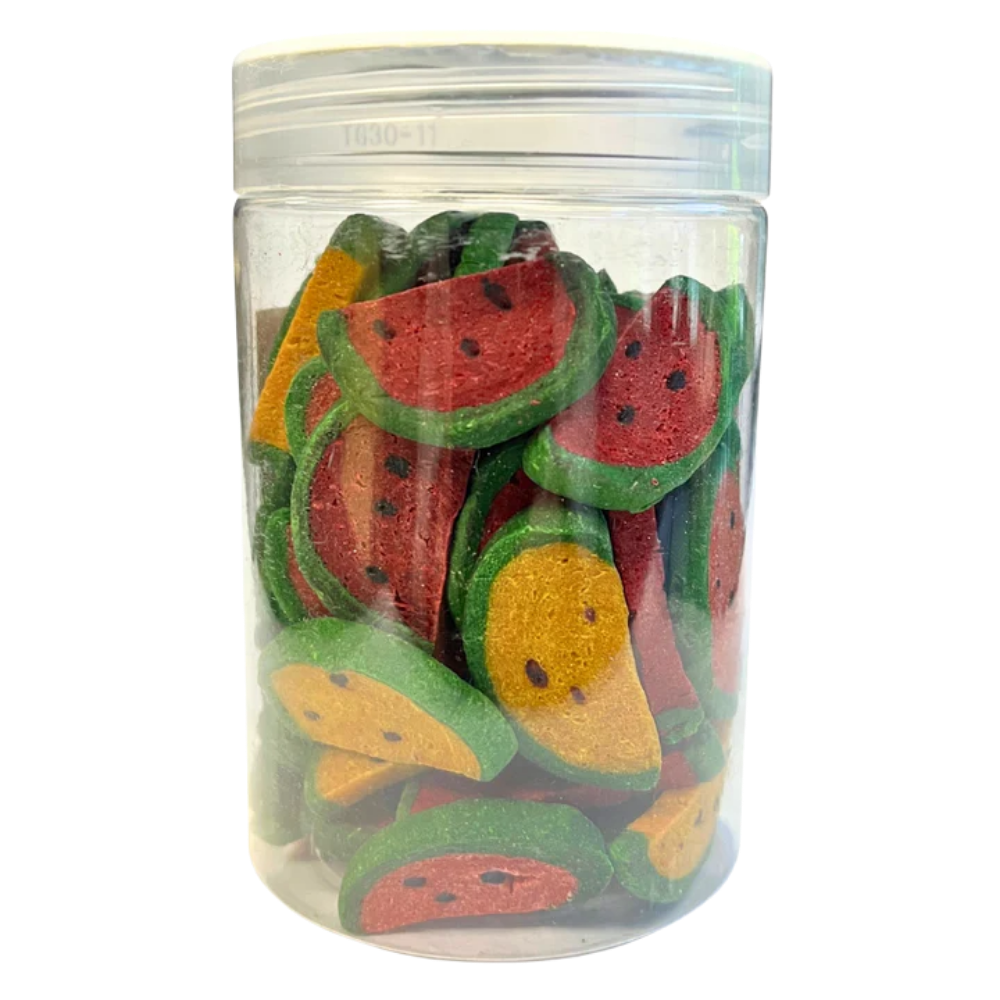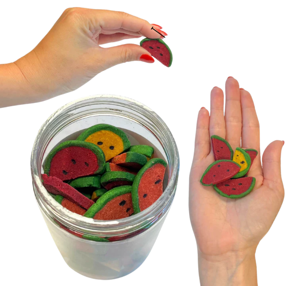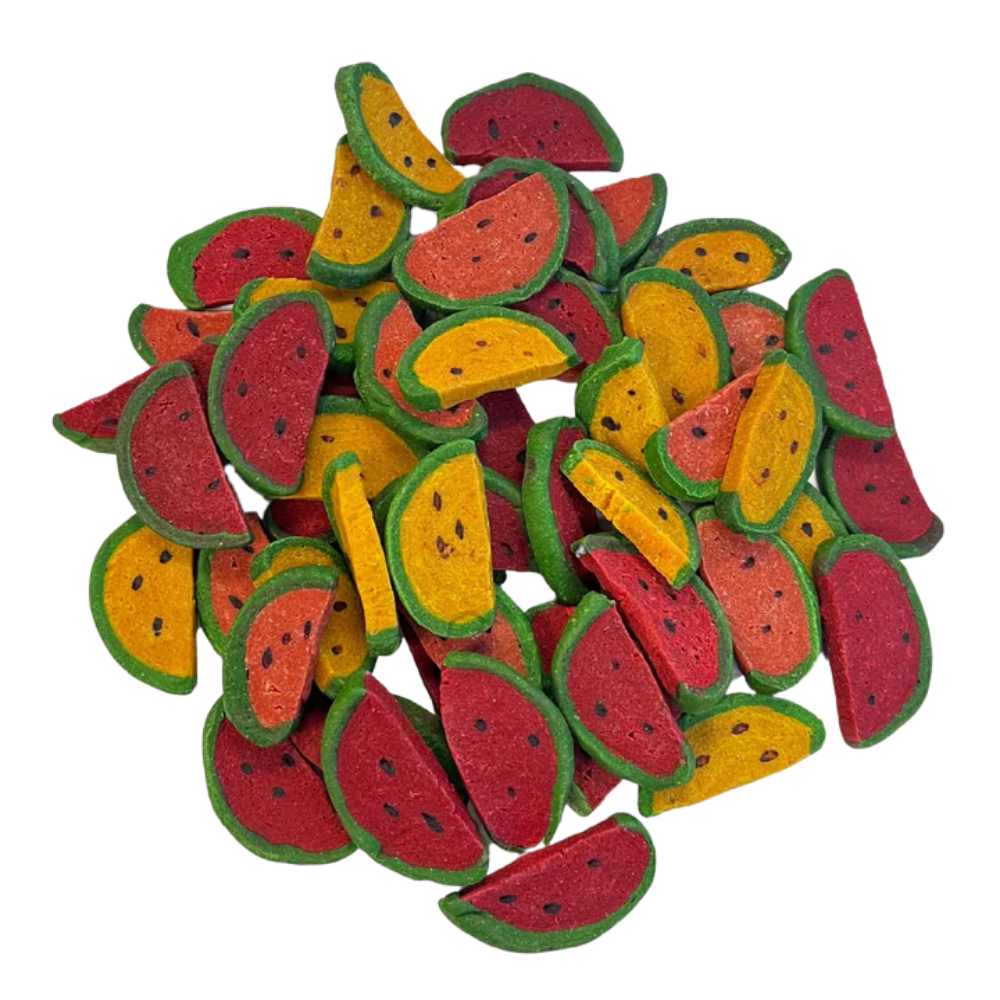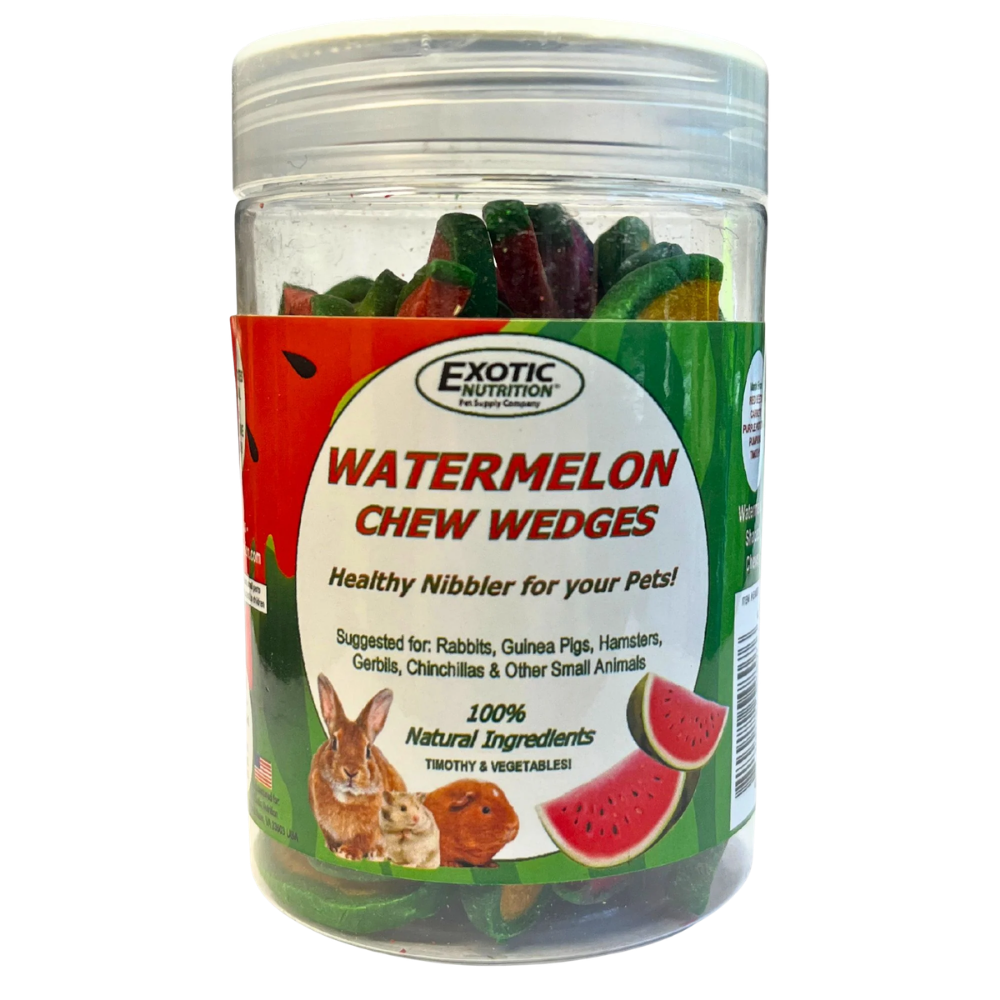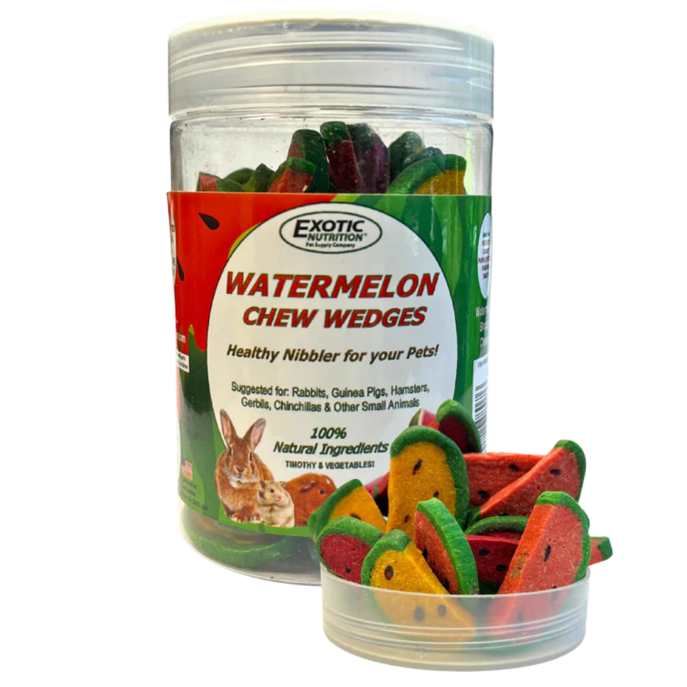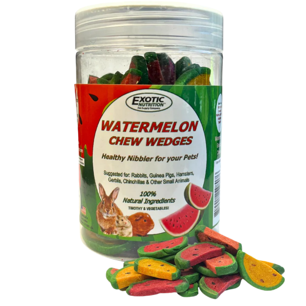Dale a tu mascota un snack saludable, divertido y nutritivo con las Sandías Deshidratadas Watermelon Wedges de Exotic Nutrition, diseñadas especialmente para animales pequeños.