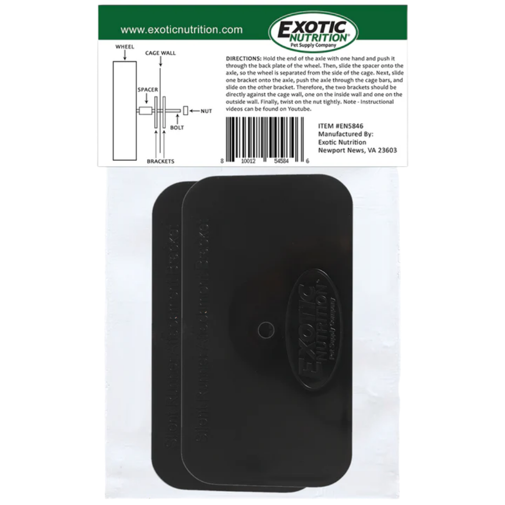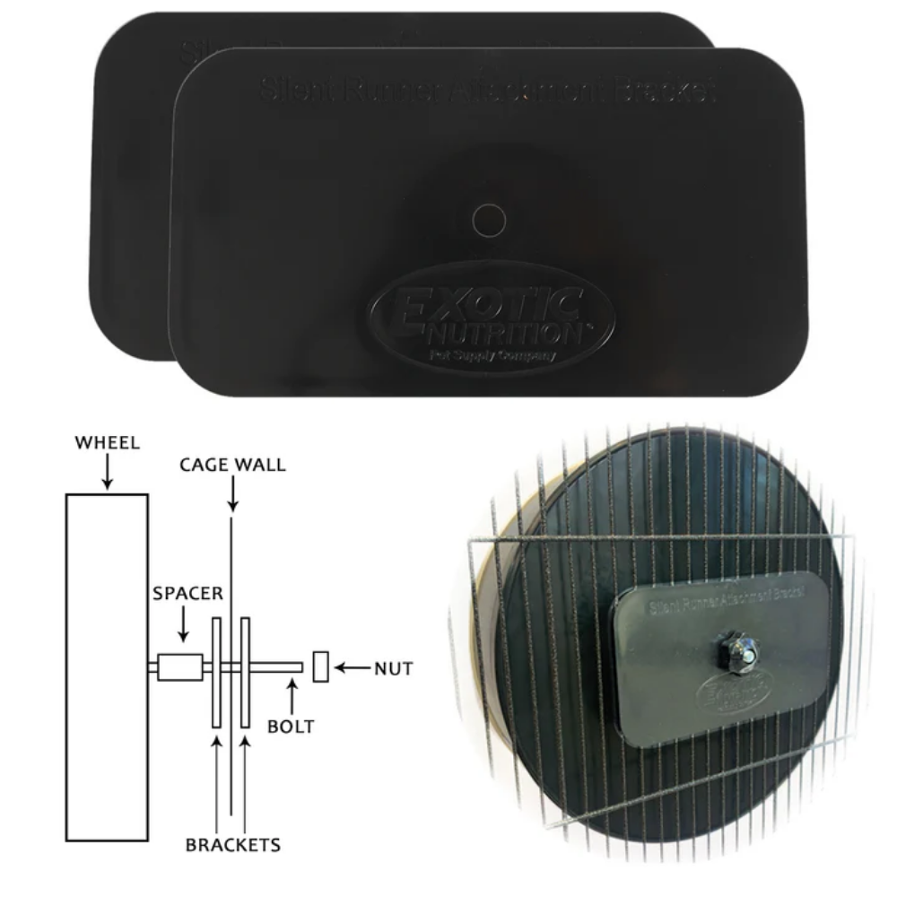 Optimiza el espacio y mejora la instalación de la rueda de tu mascota con el Cage Attachment Bracket de Exotic Nutrition, un accesorio diseñado para montar ruedas directamente en la jaula.